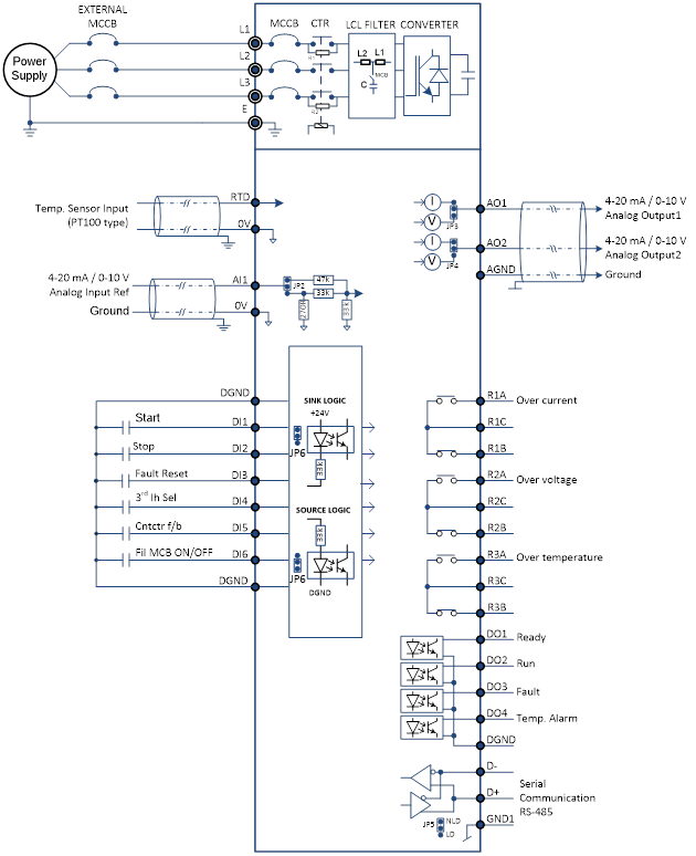 - Minimum 3 % line reactor is required in series with higher di/dt
