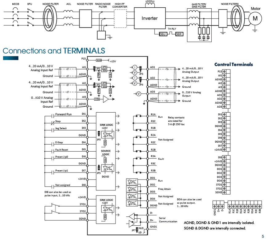 - Well-defined terminations for power and control circuit. All the power terminals are on either left side or bottom side